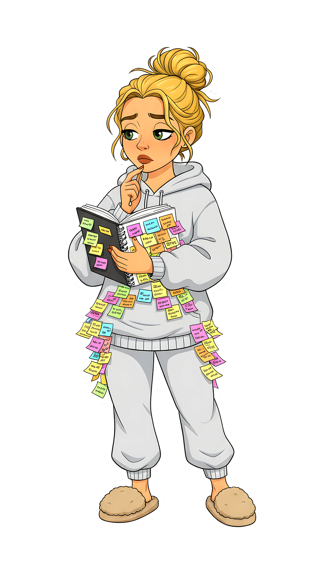 So then you walk into the office (which is also your house, because work-life balance is a myth) and you find your husband the second he sits down. You tell him everything. Not because he needs to do it all, but because if you don't say it out loud, you'll forget, and if you forget, it'll haunt you at 2 a.m. like some kind of anxiety ghost. And then you feel bad. Because he has his own list. His own 75 things.